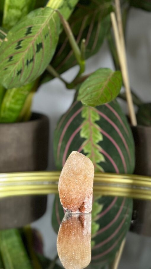 La Amatista Rosa se asocia con el chakra corazón y se le atribuyen propiedades que favorecen la sanación emocional, la reconexión con el niño interior, el fomento del amor propio y la compasión, así como la liberación de bloqueos emocionales. Se considera que ayuda a calmar la mente, a reducir el estrés y la ansiedad, promoviendo un estado de paz interior y equilibrio emocional.