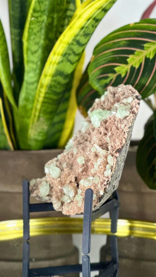 Calcita Marrón con Apofilita Verde: Esta formación mineral combina la energía de alta vibración de la Apofilita Verde con la estabilizadora influencia de la Calcita marrón, creando una sinergia única que facilita la claridad mental y la conexión con la Tierra.